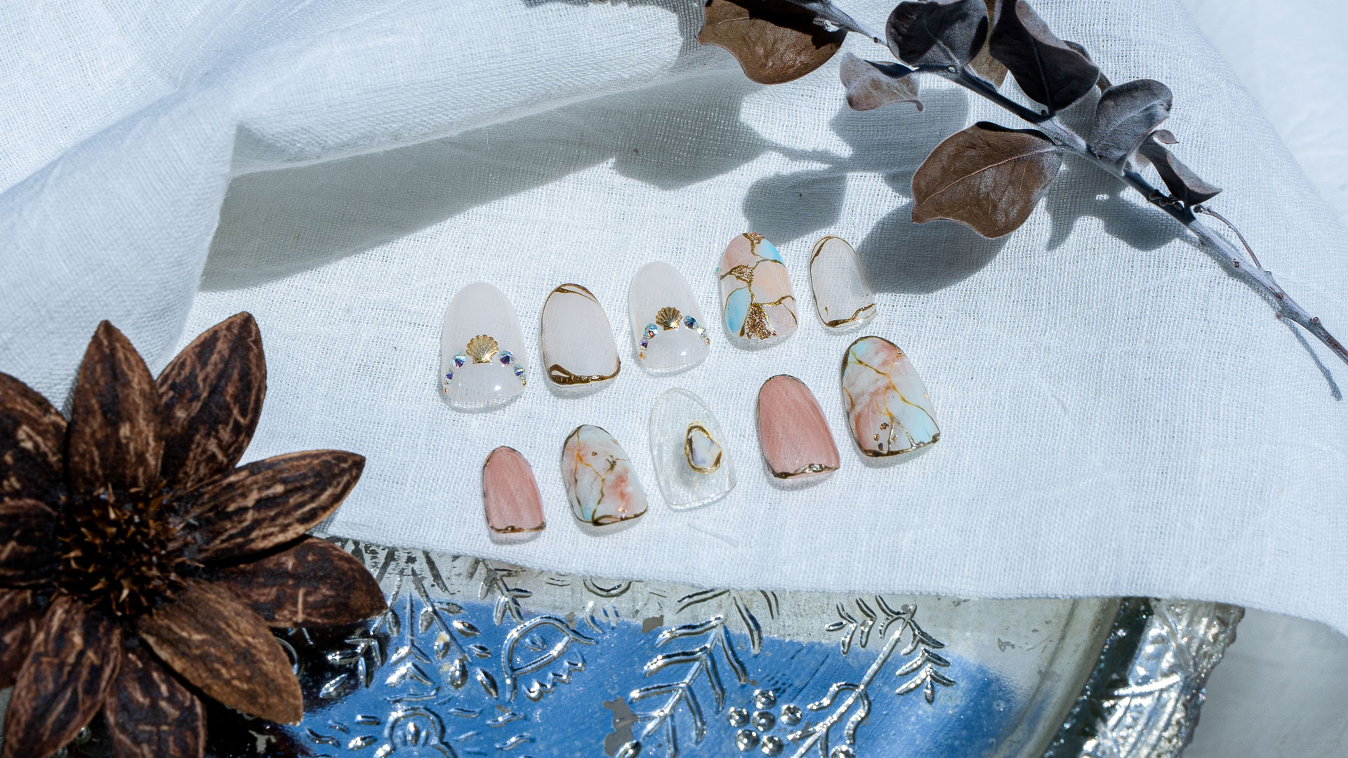異なるネイルチップを組み合わせて10本セットにしたら、「個性的なニュアンスネイルチップ」になりました。新品と変わらない、これからの時代にぴったりのデザインです。